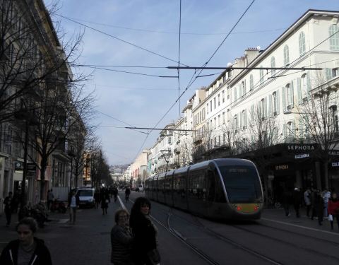 金梅德新大道是法国尼斯的一条主要商业街,街上的主要公交是有轨电车,有轨电车也是尼斯的特色风情,...