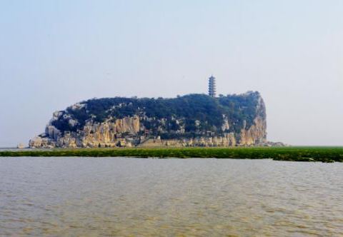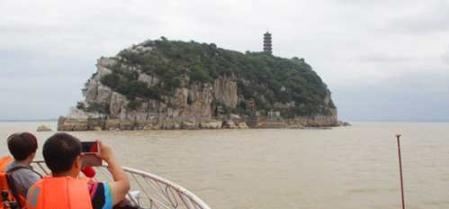 这是一座湖岛鞋山,源于它一头高一头低,远望似只巨鞋浮于鄱阳湖中,从西北角的石穴泊舟而过,不禁想到宋代诗人苏轼所写“山苍苍,水茫茫,大姑小姑江中央”的诗句,又感动于大孤山那美丽人的传说。空不时有乞食鸟来回盘旋,抛掷食物,不论高低,它都能准确啄到,也不失为游玩一大乐趣。