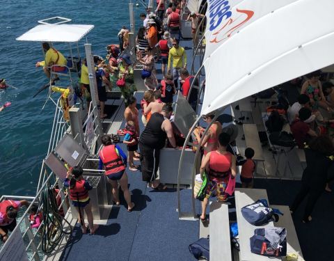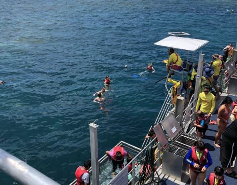 摩尔外堡礁有数以万计的瑰丽海洋生物令人赞叹不已参加的一日游活动,出行那天天气很好,船公司提供浮潜设备,船公司有一块海域里可以浮潜体珊瑚大堡礁群。摩尔外堡礁有数以万计的瑰丽海洋生物令人赞叹不已。有灵巧的小丑鱼尼莫,巨大但友好温顺的福寿鱼,可爱憨...参加的一日游活动,出行那天天气很好,船公司提供浮潜设备,船公司有一块海域里可以浮潜体珊瑚大堡礁群。摩尔外堡礁有数以万计的瑰丽海洋生物令人赞叹不已。有灵巧的小丑鱼尼莫,巨大但友好温顺的福寿鱼,可爱憨厚的大海龟,和色彩斑斓让人惊艳的珊瑚礁。 摩尔外堡礁海上平台的活动也很丰富,不会游泳的游客可以去海底观景站,或者乘坐玻璃底船、半潜水艇,这些项目都能让你透过玻璃观测水下世界。海底漫步需要戴上连接着空气输送管道的头盔,你在水下也能正常呼吸。在海洋水族缸可以触摸珊瑚,全封闭游泳池专为儿童而设,若预定了直升机体验,将从空中俯看到极为壮美的海景。 展开