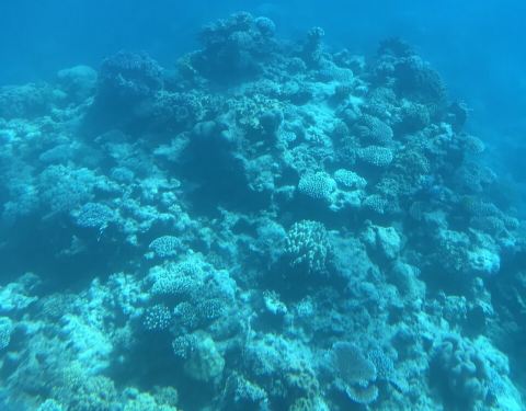 海水未污染,很多鱼类在珊瑚礁游动,难能可贵的是可以看见一些活珊瑚