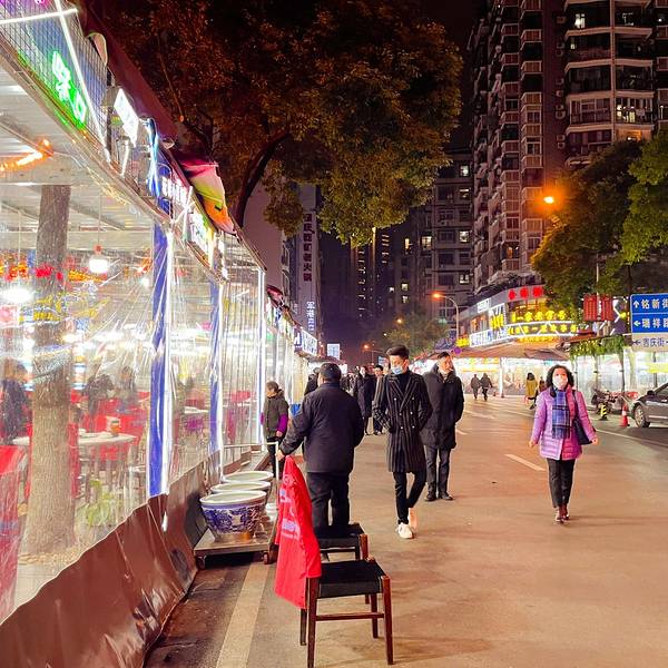 晚上逛逛江汉路,时间迟了,再来到吉庆街,找一家大排挡坐下来,点一下酒小菜,三两好友聚聚,旁边有民间的艺人过来了,点一两首歌助个兴,花个不多的钱,却可以过一个别具特色的武汉夜晚。看着眼前的吉庆街一片喧腾,好不热闹,这是不是大家特别熟悉的武汉街景,每一个场面都觉得亲切又温暖!
