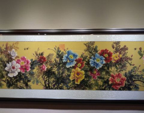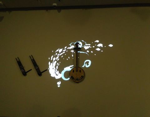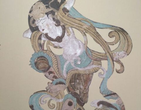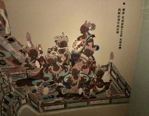 一个不大的艺术馆,目前正在进行敦煌舞乐的专题画展,讲解得极为专业,体会到讲解员对敦煌艺术深切的热爱。因为画作均为复制品或印刷品,所以能很近距离地细看。在指点下,看到了胡旋舞最早竟然是用脚跟旋转,也看到了早期与晚期画工的音乐知识的高下之分,还有很多画面上的细节。因为主题是乐舞,展方还专门制作了影音资料,让大家能听到千年前的乐器到底发出的是什么声音。展出到九月十日结束。