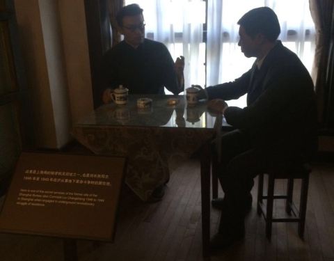 去静安嘉里及静安寺玩的,还想不到背后愚园路上有这样一个所在。我是骑车过去。管理员不让我门口停车。说参观,才让停。底楼门廊处有交票提示。再去问,现在不要领票也随便参观。三层。最高现在不让上。缝纫机、有暗层的大书桌实物、翻译用大辞典等实物也较多。但周边都是高楼大厦,从里面窗户望出去,已想像不出当年景象了。