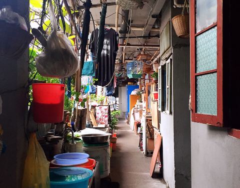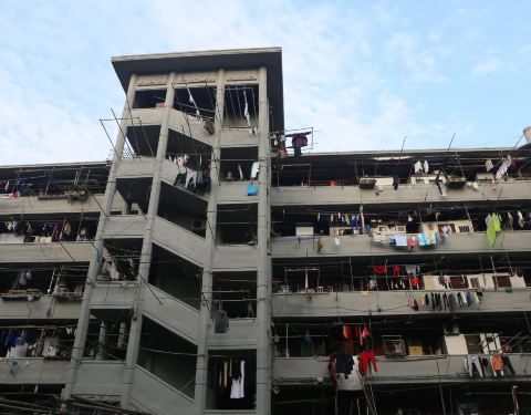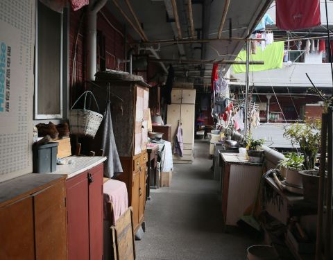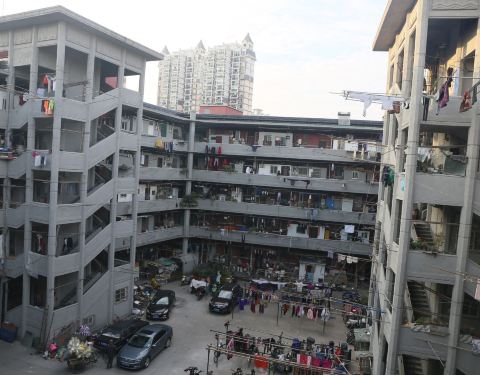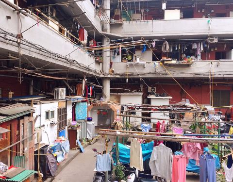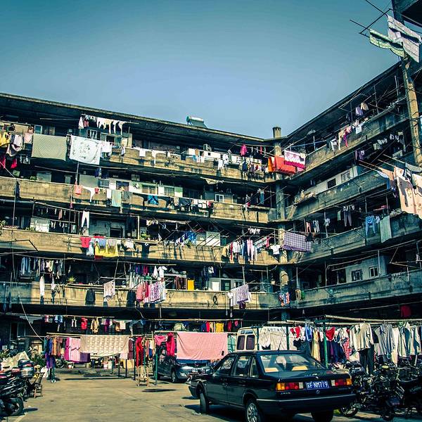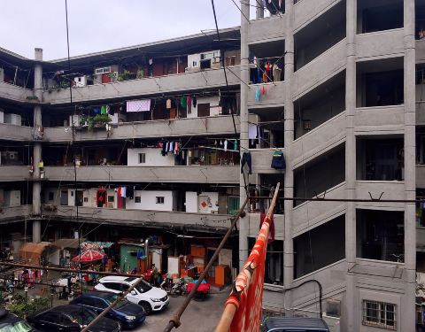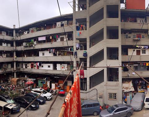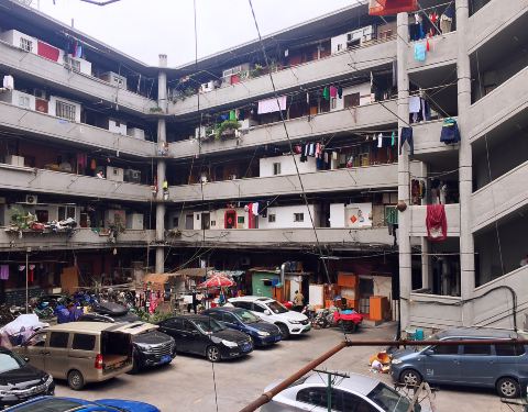 以前的职工宿舍楼,矩形环状,因为周星驰《功夫》一片里有相似布景而火了。现在住在那里的多是老人,整体氛围和福建土楼好像。