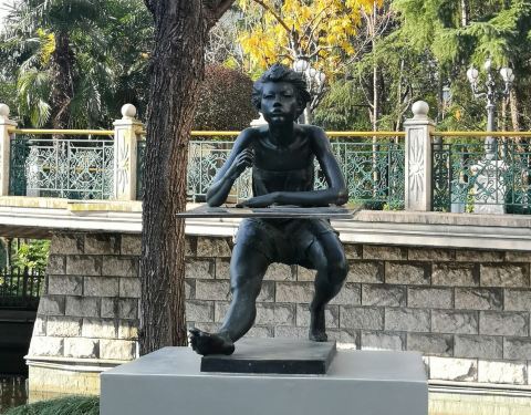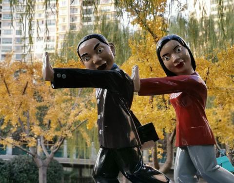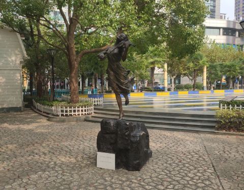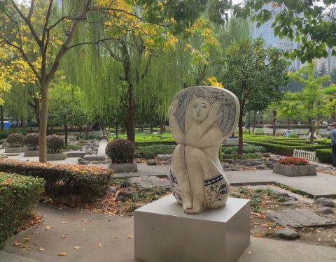 上海有条长寿路,长寿路上有个长寿公园,每到深秋进入冬天,公园里的银杏一片金黄,这个时候再逛公园,跟春天的感觉不一样,那些雕塑在银杏的衬托下,显得更生动了。只是公园的几个水池好像干涸了,内部也有一个工程在施工,显得有点凌乱。