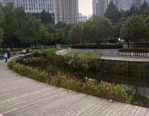 ...绿化覆盖率高,空气清鲜,园内有许多雕塑与绿化融为一体,木桥,喷泉,水森林…周末休闲漫步的好地方