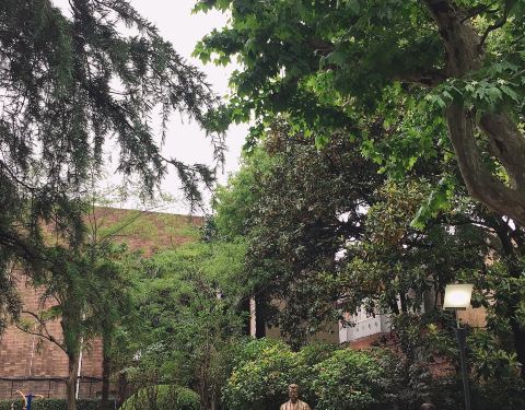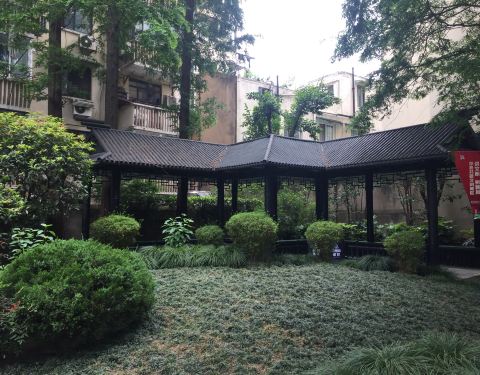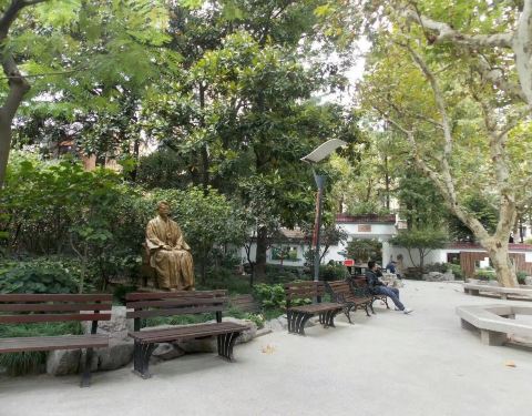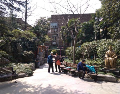 绍兴公园在绍兴路近陕西南路上,公园不大,里面有一尊日本友人梅屋庄吉的雕像,祈愿日中两国人民的世代友谊。说公园其实也就是一个小区的花园差不多,周围都是民房沿公园而建,小区居民三三俩俩的坐在公园聊天,遛娃的。