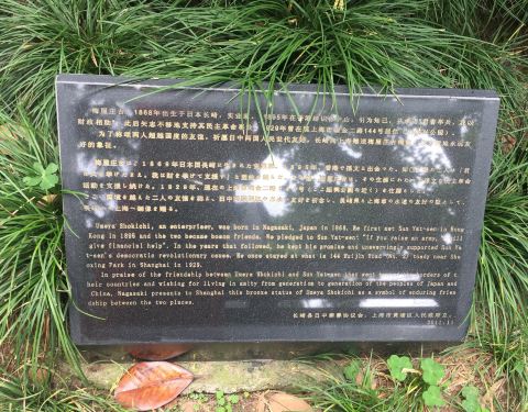绍兴公园在绍兴路近陕西南路上,公园不大,里面有一尊日本友人梅屋庄吉的雕像,祈愿日中两国人民的世代友谊