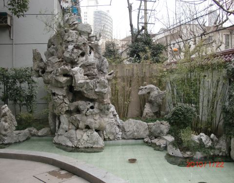 绍兴路就是一条不长的幽静的马路。 绍兴公园也很静,很袖珍。 是戏曲艺术主题公园。 原来据说是棚户屋区,拆掉后建成的公园。 公园真的不大,但较精致。 门前的假山,公园里的修竹、水、盆景、京剧脸谱,染上了绍兴路的文化气息。 公园中间一棵较大的松树带来不少绿荫。 也有一些简单的健身设施。 这里老人居多,三三两两闲坐、下棋,气氛很安宁。 人到了这里,心都会静下来。 偶而会在里面坐坐,看看老人悠闲的姿态,看看蓝天白云,生活还是美好的。