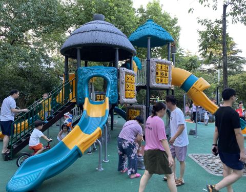 家门口的一个市民公园,真的是很久没去了,公园内的环境现在做的不错,没什么玩的东西,中间有一座假山,有一个小的儿童游乐园,其余主要是健身器材、植物和散步道,门票是免费的e