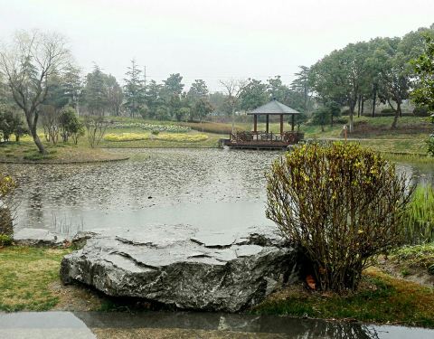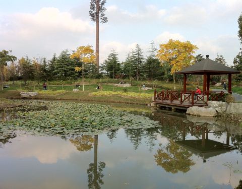 陈行公园地铁8号线浦江镇站出来步行7,8分钟可以到了,整个公园感觉很开阔,有儿童乐园,观景厅亭...