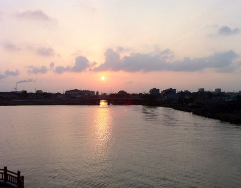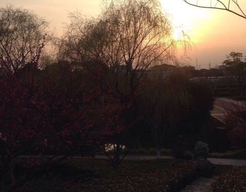 周日下午,突发奇想,坐地铁去陈行公园走走,于是乎,8号线浦江镇下,出站过马路来到家乐福,一问,就在南面的周浦塘对岸。公园不大,但玲珑精致,小桥流水,绿树成荫,游人不多,比较清静。在公园内晃悠了将近1个小时,出了公园,在周浦塘桥周围转悠了一下,天色渐晚,干脆等着拍夕阳,大约16:30左右,拍下了陈行公园北侧、周浦塘桥西侧的夕阳下山,拍完照后,立即坐地铁打道回府。 趁周末你也去走走吧,亲近大自然,远离PM2.5,主要是比市中心的公园人少。 图1:公园北大门; 图2:园中亲水凉亭; 图3:正直欣赏银杏的季节; 图4:枫叶也红了; 图5:水中倒影; 图6:水中小岛; 图7:临水花廊; 图8:银杏树; 图9:陈行公园北面的周浦塘桥; 图10: 周浦塘上夕阳西下。