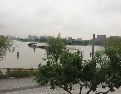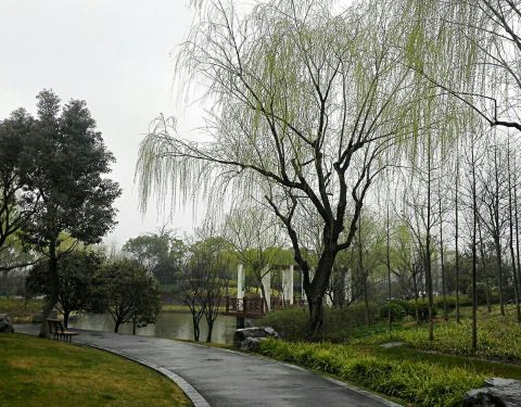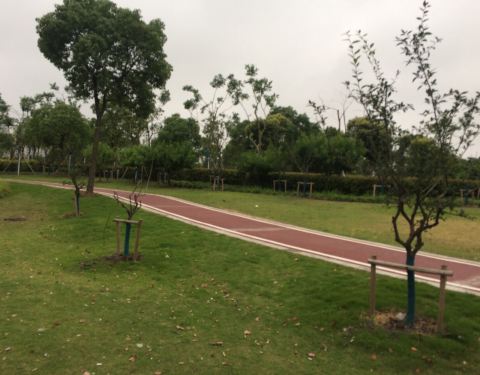 浦江镇的一个小公园,地方不大,狭长型,没有什么太有特色的,有一个比较大的锻炼场地,一些锻炼身体的设施,有一个湖。但是周边停车比较乱。