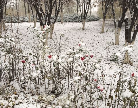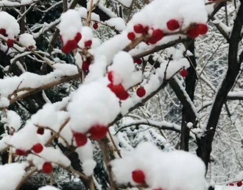 北京仰山公园在朝阳区,一个小区旁的公园,下雪后的景色很美,2019年冬天的冬天的第一场北京大雪,红果上忖托着白雪,点点缀缀,很是安静