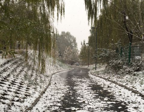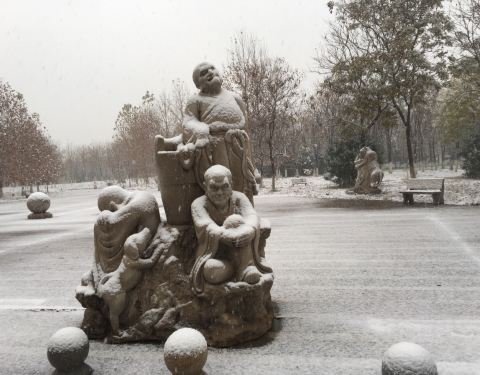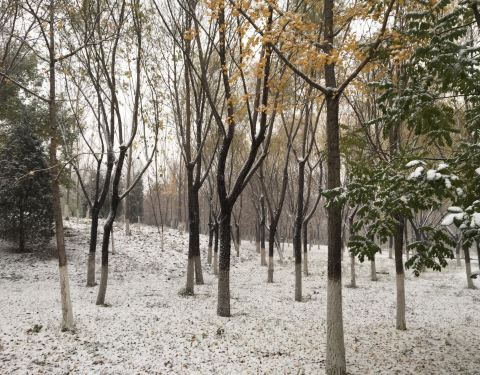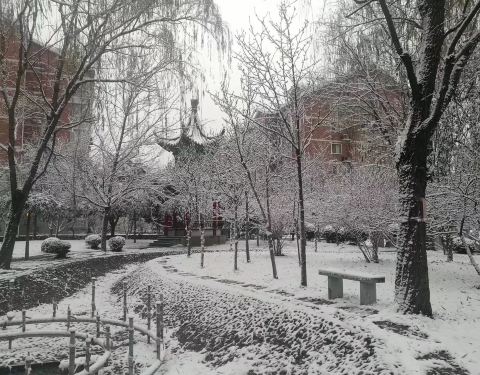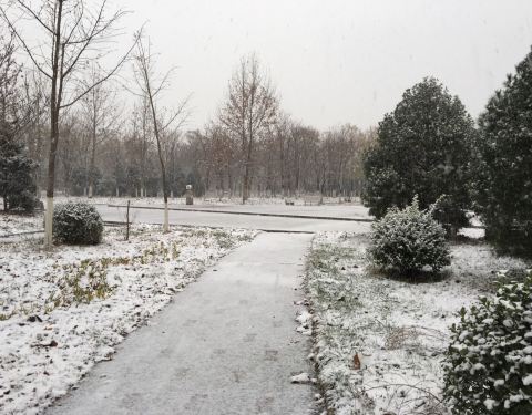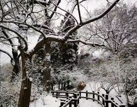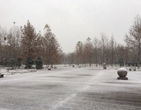北京仰山公园在朝阳区,一个小区旁的公园,下雪后的景色很美,2019年冬天的冬天的第一场北京大雪...