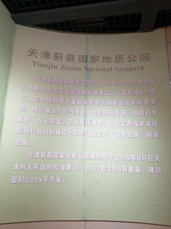 离开鲁班庙计划去蓟州区内的一处公园-府君山公园府君山在明代以前叫崆峒山,山中多洞,其中穿云洞、山顶洞、白大洞等较为有名,崆峒积雪,为古代渔阳八景之一。明代以后,山上建有崔府君庙,故改称为府君山,府君山乃道教文化之古山。蓟州地质博物馆就在府君山公园里面,大门进来往上走一些就到了。蓟县地质博物馆分为地下一层,地上四层,内设地质展馆和历史展馆,采用“层的地质,叠的历史,层层叠叠的建筑,层层叠叠的岩石”的设计方案,结合地形地貌,采用片石砌成,看上去显得古朴,层次感鲜明,凸现了地质博物馆的特色,是一座富有地质特色的山地建筑,是国内同类展馆中规模最大的一个。蓟县地质博物馆以地球科学、中上元古界地层剖面、矿产资源展示为主体,向观众展示地球的地质历史、地质事件和形成过程,是一座具有现代化、高科技、独具天津特色的地质博物馆。各种岩石古植物化石古生物化石象牙化石矿物质水晶在地质博物馆出来后身后就是府君山,肯定是要爬上去的,爬上去可以俯瞰蓟县城区。往山上走找到了上山道相传华夏人文初祖轩辕黄帝问道的典故流传甚广《庄子·在宥》说:黄帝当上天子的第十九年,到崆峒山拜见广成子(广成子是道教的始祖),求治国修身之道.第一次,碰了壁,受到了广成子的讥讽.黄帝很惭愧,回去后,捐弃天下,筑起一间别室,闲居默想三个月之后,再去求见广成子,广成子接见了他。所说的崆峒山就是现今的府君山。最后一段有点野山的感觉到了这个亭就算是爬上来了远处还有连绵的山体,没有在往前走因为计划下午去爬盘山。府君山高处还有一石碑上来后俯瞰蓟州城区下面最近的建筑就是地质博物馆在山上没有多做停留就下来了,又回到地址博物馆这里走出府君山公园,马路对面也是一处休闲广场又来到渔阳古街来觅食,昨天晚上吃的那家碗坨和土家酱香饼,还看到他家的面条也不错,念念不忘的又回到了他家。吃饱喝足后前往下一站——盘山!