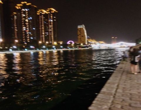 百年历史看天津,千年历史看北京————夏天,12日暴走津京 第二天 天津_3 天津海河14 坐在河岸边,跟或当地人或游客一起对着河风纳凉。仅对于这一点,好像就对天津多了很多好感。微风习习,潮湿的空气,撩拨着夏季的燥热,于是生出了些许的清凉,这个夏夜就舒爽了不少。 有人在游野泳🏊,其实是很不安全的🚫。河岸的夜,美得不像话。想坐在这不起来,河岸边的石头被白天的太阳炙烤的温热,坐上去像是在汗蒸房,舒服的很。如果不怕鞋子湿掉,还可以下去几个台阶,玩玩水
