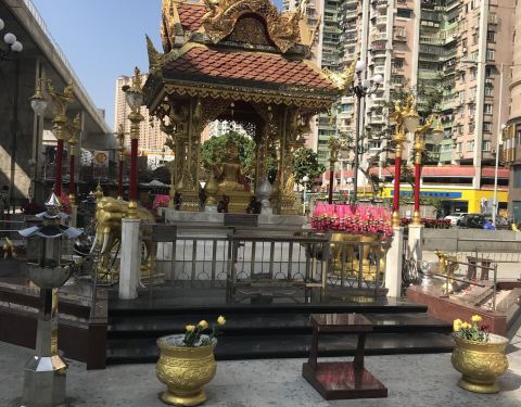 澳门四面佛,这座佛在澳门是非常出名的,据说特别的灵验,所以有很多的游客和当地人都来这边祭拜,澳门居民都是比较迷信的所以这种寺庙特别的多