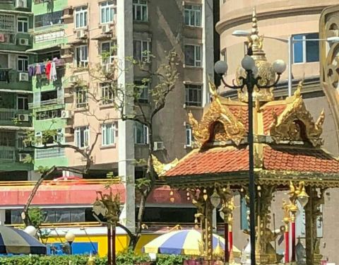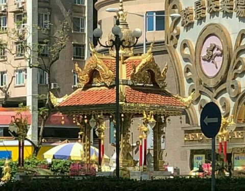 这个在泰国很兴的佛像香火很旺,过去还是这里有名的旅游地,当然现在也有很多善男信女来拜这个在泰国很兴的佛像香火很旺,过去还是这里有名的旅游地,当然现在也有很多善男信女来拜。说真的,要拜四面佛还是去泰国吧,这里的四面佛设在两条车路的中间。