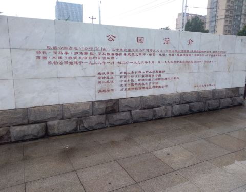 欧韵公园是一个比较符合其取名的市中心公园,里面有很多欧式风格建筑物及人物塑像,公园里有不少的市民在休闲娱乐,旁边的一块地方还开有儿童乐园,也许是下雨的原因,玩的人不多。