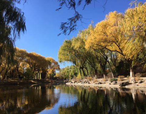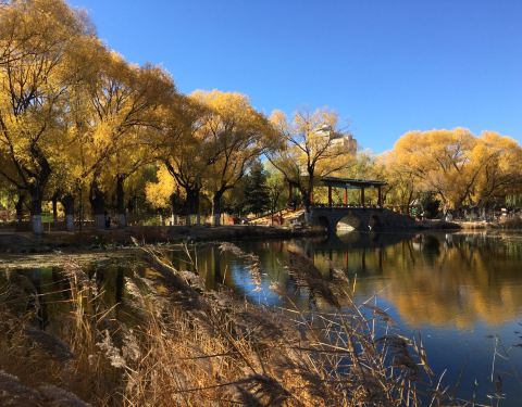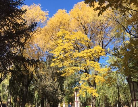 满都海的秋景最美,金黄色的树叶在太阳的照射下发出耀眼的光芒,热爱生活的人们跳舞、唱歌、下棋、跑...我家就在满都海公园附近,周末都会去散步,满都海的秋景最美,金黄色的树叶在太阳的照射下发出耀眼的光芒,热爱生活的人们跳舞、唱歌、下棋、跑步,生机勃勃。