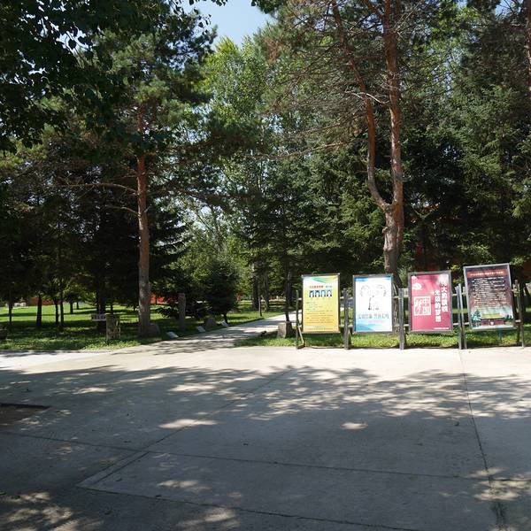 在哈尔滨市阿城区的郊区,到阿城下车后可以打车前往,周一闭馆休息。挺好的一个人地方,绿树成荫,虽说是陵园公园,太也不会觉得阴森可怕。下到模拟地宫里可是真需要一点勇气呢,我可是有点怕怕的!