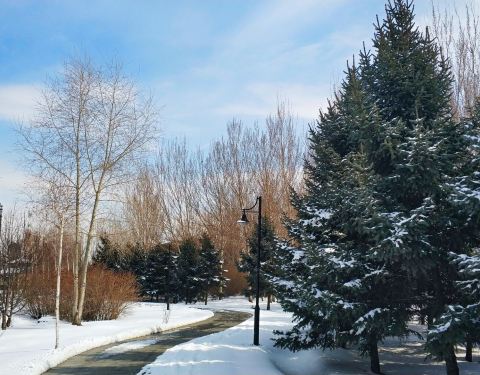 冬雪下的丁香公园显得略微有些萧瑟,不过相较于春暖花开争奇斗艳此时更有一番独有的意境