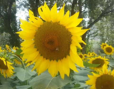 这里所说的是和平体育公园, 在沈阳站乘坐324路区间,工农桥南站下车,回走不远就到了,免费开放。9月份正是向日葵盛开的季节,大多是家庭共同出游,带好帐篷,野餐用品,公园内没有卖吃的喝的!一定要自带,连卖水都没有,只有卖儿童玩具的。向日葵很大一片,环绕半个公园,也有很多蜜蜂,带孩子的一定要小心,不要蛰到。公园内还有好大一片草坪,游人都在上面野餐,非常适合小朋友玩耍,又不怕跌倒摔伤。很多游人都在这里凹造型拍照,更有很多新人在此拍摄婚纱照,可见景色非常优美,无论是向日葵还是草坪都非常美丽,但是正因为游人众多,所以带孩子的更需要格外小心看护,我去那天就有意外导致风筝打到孩子眼睛的事情发生,家长一定要小心保护孩子。总体来说,非常适合带孩子亲子出行的地方,既有美景,孩子又欢喜,而且又不收费,一等一的好地方!