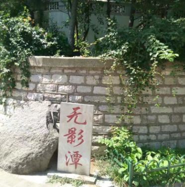 因处无影山而得名。此泉由多年掘砂逐渐形成,以石砌岸,面积5000多平方米。水源由无影山多处岩石中涌聚而成