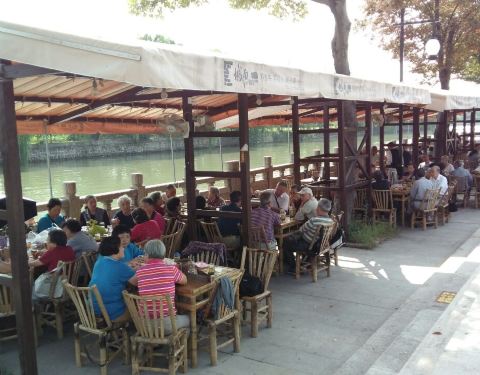 上周专程由上海去苏州桂花公园看桂花,桂花已开了,但尚未开足。估计国庆期间能看到金桂怒放的最隹景象。护城河边的茶座坐满了人,茶资十元,很亲民