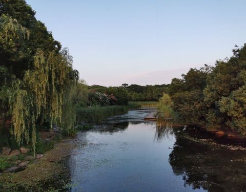 免费开放公园,景致不错,小桥流水,白莲池,书画廊,跟有些艺术的氛围。夏天还是很热的,不过湖边微风吹起,很是清爽。慢慢走,挺好。