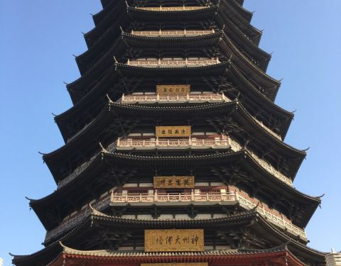 现在13层周边景色尽收眼底,太漂亮乐!之后在由上到下逐层参观,最后参观地宫。在天宁寺内,非常棒在天宁寺内,非常棒!气势恢宏!我们先乘电梯上到12层,然后上楼梯参观13层以及塔顶的大钟。现在13层周边景色尽收眼底,太漂亮乐!之后在由上到下逐层参观,最后参观地宫。
