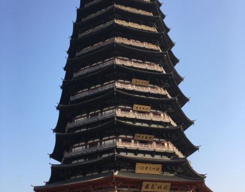 塔是新建的,塔内有电梯,可以直达呀12层,登上第13层塔应该风景会很好吧。登塔费要60元/人,一个字登塔费要60元/人,一个字~贵!塔是新建的,塔内有电梯,可以直达呀12层,登上第13层塔应该风景会很好吧。不过,塔的气势虽然宏伟,但怎么看,水泥构件太多,缺乏一种古老建筑的韵味。