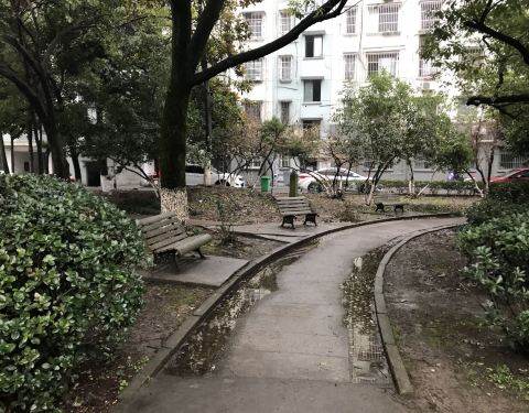 没有什么特别的标识,望上去就如同一个普通的街心公园。但已相当斑驳。特地过来看意义不大。 有些晨练器具