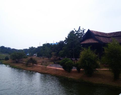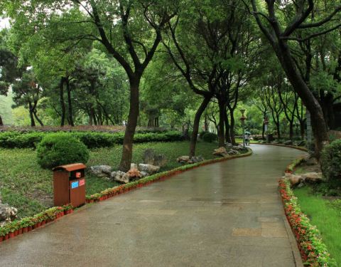 入口处不远就走到了会景园,这里有绿茵广场,还有会景园码头。从码头可乘渡轮去湖心岛,壕股塔等景点。会景园里绿荫葱葱,植被茂盛,更有各种应季花盛开着。特别是在烟雨蒙蒙的时候来这里漫步,更能体会烟雨江南...