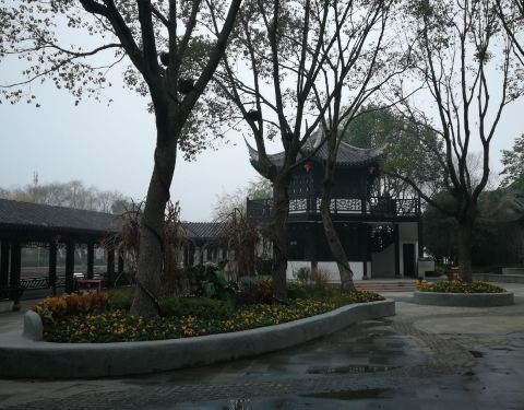在嘉兴南湖南岸,包括了入口处假山广场在内的一系列建筑。称其为一个单独的园林似乎不太合适。它更多是一个景点。最吸引人的莫过于入口处氤氲之中的假山和不时升腾而起的雾气,如梦如幻。
