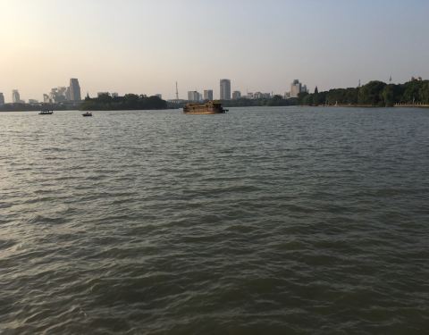 从码头可乘渡轮去湖心岛,壕股塔等景点。特别是在烟雨蒙蒙的时候来这里漫步,更能体会烟雨江南的感觉