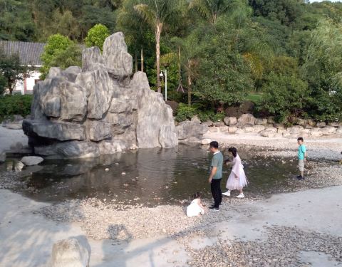 公园四周围绕着茂盛的树木,最有特色的是一棵棵的棕榈树,公园里还有一条石子路,走在上面十分的舒服十字路旁有鲜嫩的草地。坐在柔软的草上看看书晒晒太阳十分的惬意。 公园的喷泉,圆形的水池里里面有清澈的池...