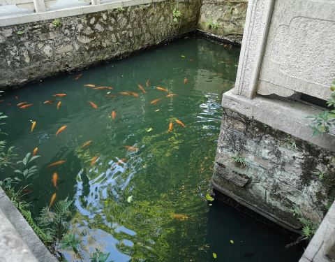 很小巧,很安静点一个被民居包围的公园,有树有池塘有亭台楼阁,还有一大片绿地,周边居民在里边游玩,美美哒!静静的享受冬日暖阳