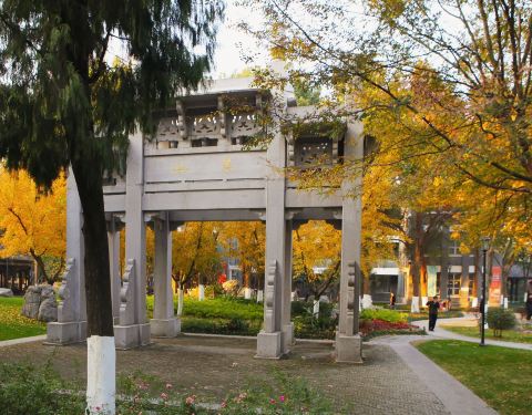 已經沒有絲毫古建築了,就是一個黃昏老人家下棋及運動的景觀公園。