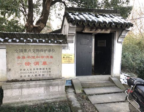 一个很小的院落,里面是一座坟墓和一间陈列室。从印山越王陵出来,沿着一条石板路走五六分钟就到了徐渭墓。墓葬在村庄里,很幽静,最好自驾前往。有一个老人看守墓园,下午四点半下班,去晚了大门锁上就进不去了...