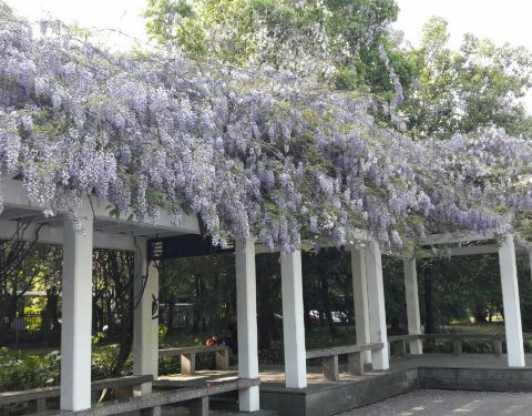 公园比较干净,有儿童乐园,还有人工小沙滩。春天紫滕花开在长廊上,还有樱花,桃花,杜鹃,,,,真的好美。秋天银杏,还有柚子,桔子,柿子树结果,绿一片,黄一片,红一片……拍照圣地