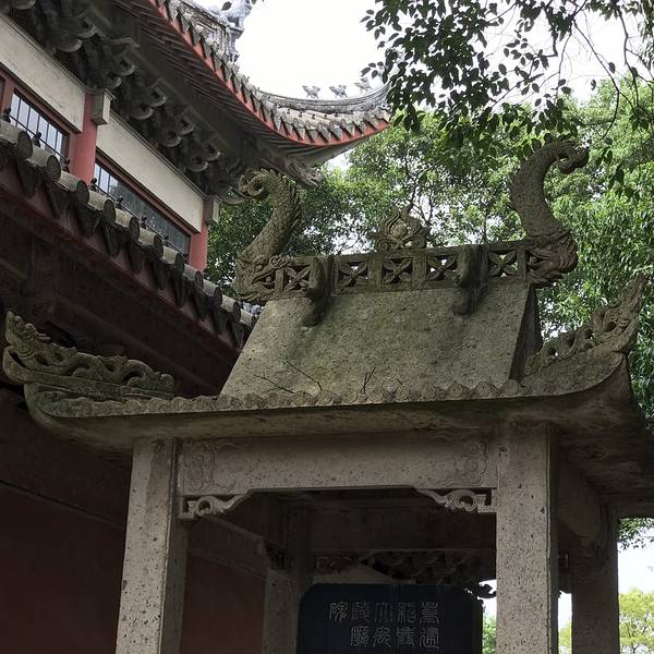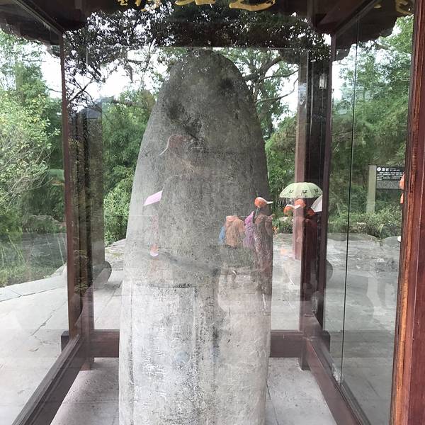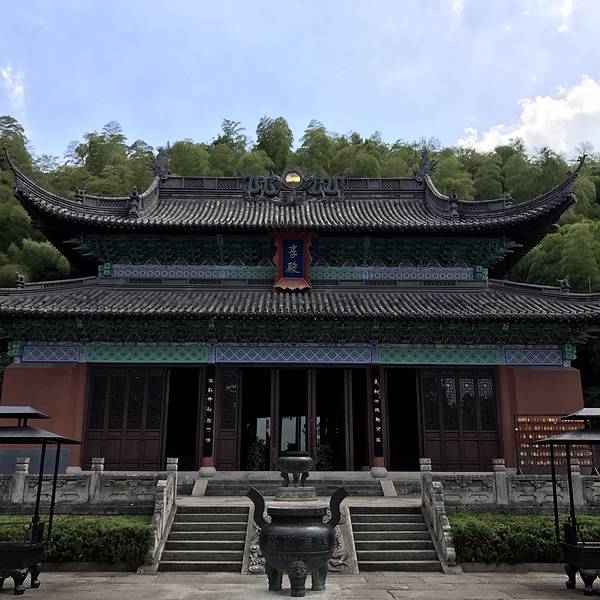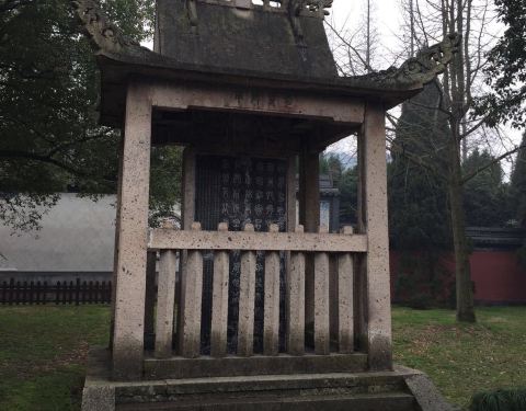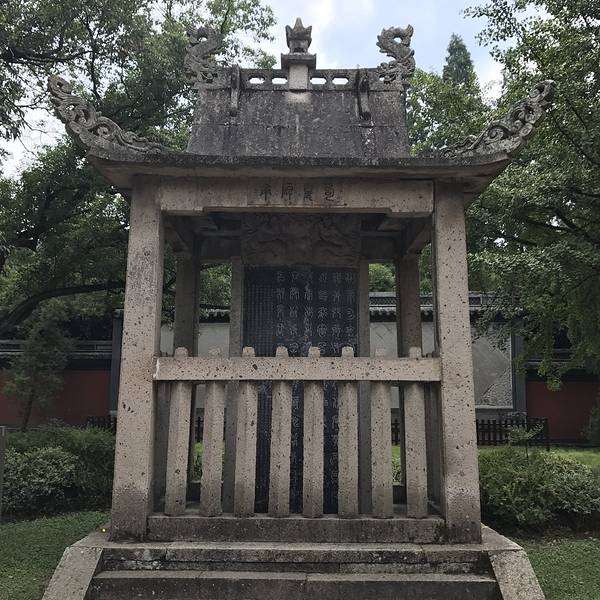 再往前就是陵区神道了,陵道是后期新建的,样式有点模仿明孝陵的陵道,但是两旁立着的都是传说中和大禹有关的神兽们,比如黄熊,应龙等!如果你对这段传说感兴趣但是可以仔细看下解说牌! 龙杠,拴马桩,按着古代帝王陵寝规定,文官在此下轿,武官在此下马!终于到了大禹陵的门口,也是国保!大禹陵由禹陵、禹祠、禹庙三部分组成。 进门首先是大禹陵!明代嘉靖初年,绍兴知府南大吉邀请学者对大禹陵的位置进行了考证,立“大禹陵”碑,并在碑后建享殿三间,大禹陵碑的亭子是79年仿照明朝原貌重建的! 亨殿在清朝光绪年间塌毁,现在的亨殿是07年重建的,仿照清朝的官式,和禹庙保持了一样的风格!禹陵背后,拾级而上就是亨殿了,里面是供奉大禹的神位!回头再看下大禹陵碑亭!亨殿两旁是碑殿,从左边门进去,有前往大禹雕像的山路,看着一路青竹修修,颇为幽静,不过想着时间比较紧就没上去了! 从亨殿下来,大禹陵的右边是禹祠,因为是86年重建的,所以没啥特色,只是匆匆看了下,讲述了大禹姓的渊源传承和治水的攻绩!整个大禹陵比较重要的景点其实是在左边的禹庙,所以我在这里逗留了比较久的时间! 从禹陵去禹庙会经过一段长廊,修得古香古色,颇有园林之趣,还镶嵌了不少碑迹石刻!长廊尽头有一小池,立一石碑,菲饮泉!尝了下旁边小铺的黄酒奶茶,味道不错!进入禹庙! 大禹庙是祭祀大禹的主要地方,由一组宫殿式建筑群组成,又是一个大手笔,始建于南朝梁武帝时期,但是屡建屡毁,现在的建筑主要是清朝重建,除了大殿是民国22年(1933年)重建! 禹庙里也有好几个极有味道老石亭! 午门口的岣嵝碑亭。大殿重建于民国,改成黑白风格后,似乎味道更浓!大殿前的右侧有御碑亭!从右侧沿着石阶上山,这里有大禹陵最重要的地面文物! 这颗大石传说是下葬大禹所用的镇石之一,这个当然无迹可考,但是石头上最早留下了东汉时的刻字,所以是货真价实的宝贝!旁边又有个古意盎然的石亭!游完大禹陵,从后门出来!走回刚才的景区大门口,突然发现我的联票不包含旁边的香炉峰,听说上面风光不错,时间还早,就想着顺路一去! 走到游客中心里一问,门票15元,包括上下山的景区小巴! 买了票就走到对面的候车处,凭票上车,半小时一班,4点半后就没了,所以大家要注意时间! 车子盘山而上,2公里左右一下就到了! 山上有一座庙,名唤炉峰禅寺!门票就是进寺用的! 一眼对禅寺印象一般,因为是新建的,很气派的大建筑,处处装饰得金碧辉煌。