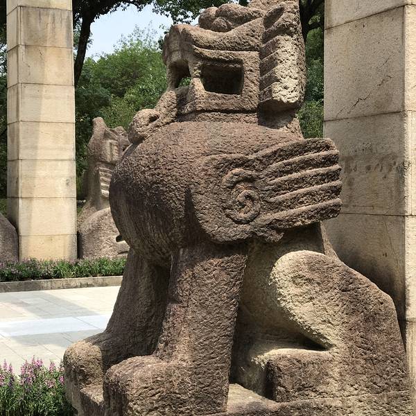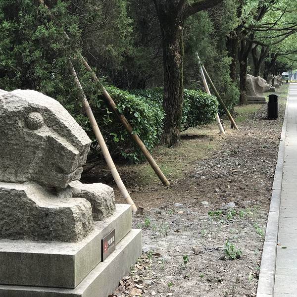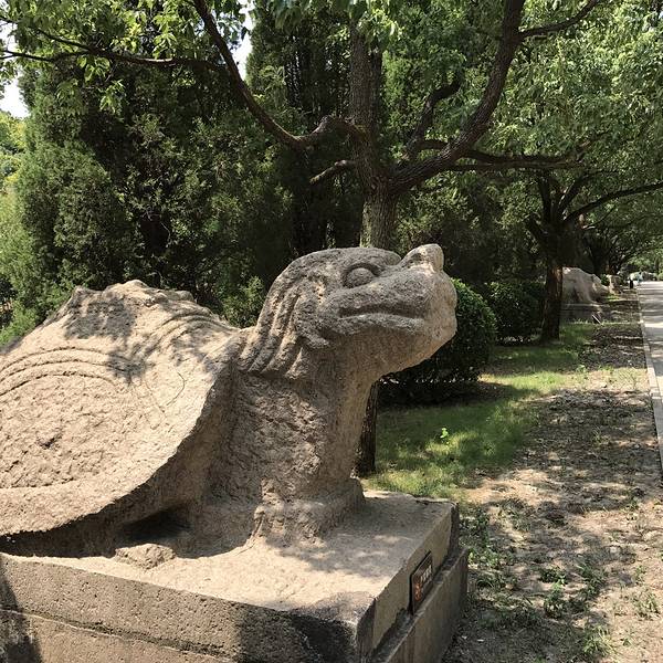 龙杠,拴马桩,按着古代...再往前就是陵区神道了,陵道是后期新建的,样式有点模仿明孝陵的陵道,但是两旁立着的都是传说中和大禹有关的神兽们,比如黄熊,应龙等!如果你对这段传说感兴趣但是可以仔细看下解说牌!