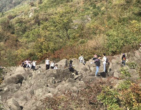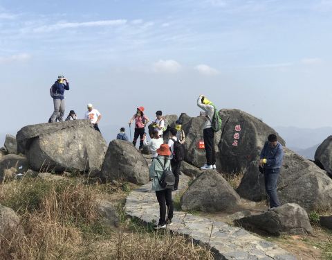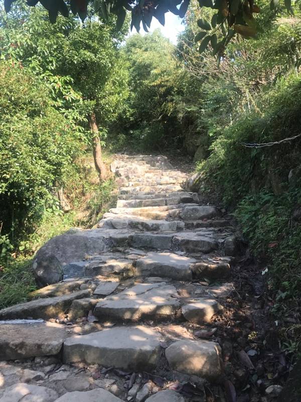 上虞覆卮山,很多人组团来这里登山,有公交车通到这里。海拔并不高,标注的距离2350米我严重怀疑是直线距离。全是图3的台阶爬上去,我这腿脚中途无休息爬了一个小时十五分钟。山顶风景不错,很多人站在石头上拍照...