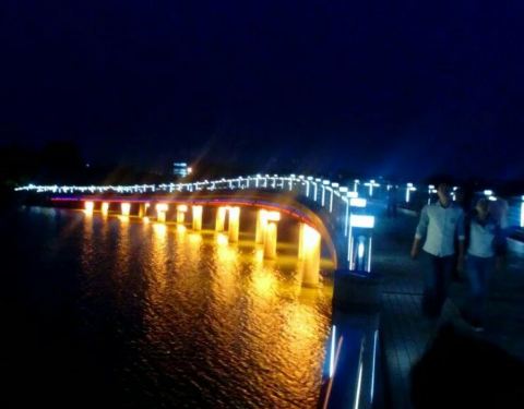 晚上的夜景非常漂亮的白天还有个小的沙滩的