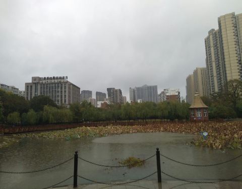 关山荷兰风情园位于武汉市洪山区民院路与楚雄大街交汇处东南角,面积8.23万平方米。关山荷兰风情园是武汉市与荷兰阿纳姆市结为友好城市后的一个具体成果。也是洪山区的第一座公园。雨中路过,简单一游,免费观揽,里面绿树成荫,有荷塘,草坪,风车,四周高楼林立。