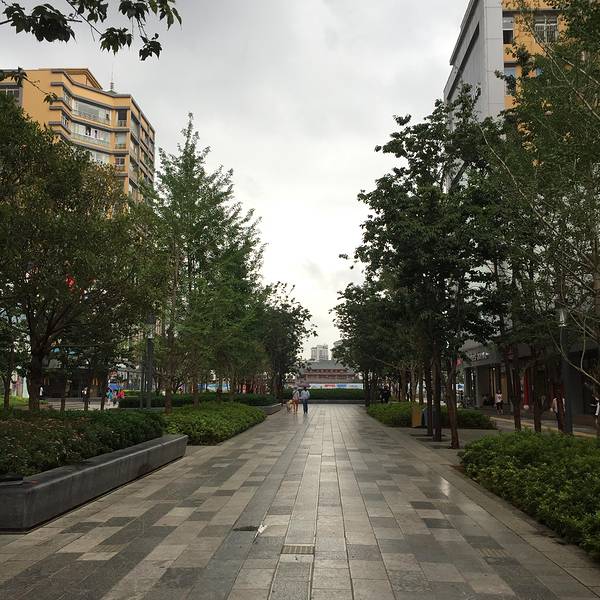 这里更像是通过南北向的步行街与其形成三角形构造的感觉,步行街上的这个牌坊放更容易被忽视,但周边...