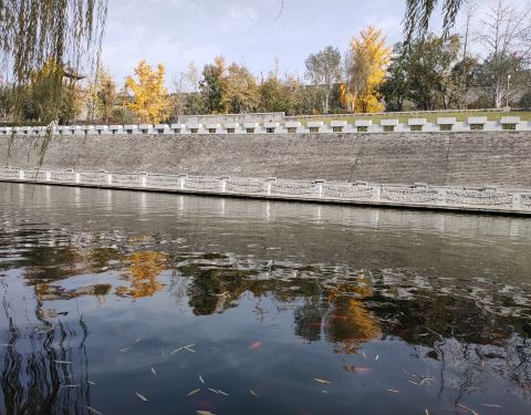 秋末冬初特别适合去环城西苑公园游玩。这个时节银杏叶黄了,在暖洋洋的阳光下,漫步在城墙下,金灿灿的银杏树点缀在公园里的每个角落。你可以停下脚步欣赏古城美景,也可带上孩子,带点面包或者馒头给护城河里的鱼儿投食。