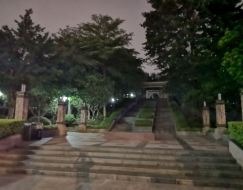 揽胜园,是生物岛上面的其中一个免费公园,占地面积并不算是特别的大,整个小岛,上面就有三四个这样子的公共空间。 进去的门口旁边有一个喷水池,在早上的有一些时段是会开放的,走进里面去,其实就是一个绿化比较好的小公园,景色方面,一般般吧,夜晚这边灯光是没有的,并没有什么太大的特别。